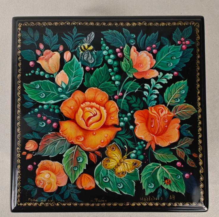 - Шкатулки – функциональное решение для хранения украшений и памятных мелочей. Особенно красивыми будут модели с росписью, например, шкатулка «Розы», отличающаяся тончайшей ручной работой и вниманием к деталям. В ней воплотилось искусство русских миниатюрщиков, поэтому она легко может стать самой настоящей семейной реликвией.