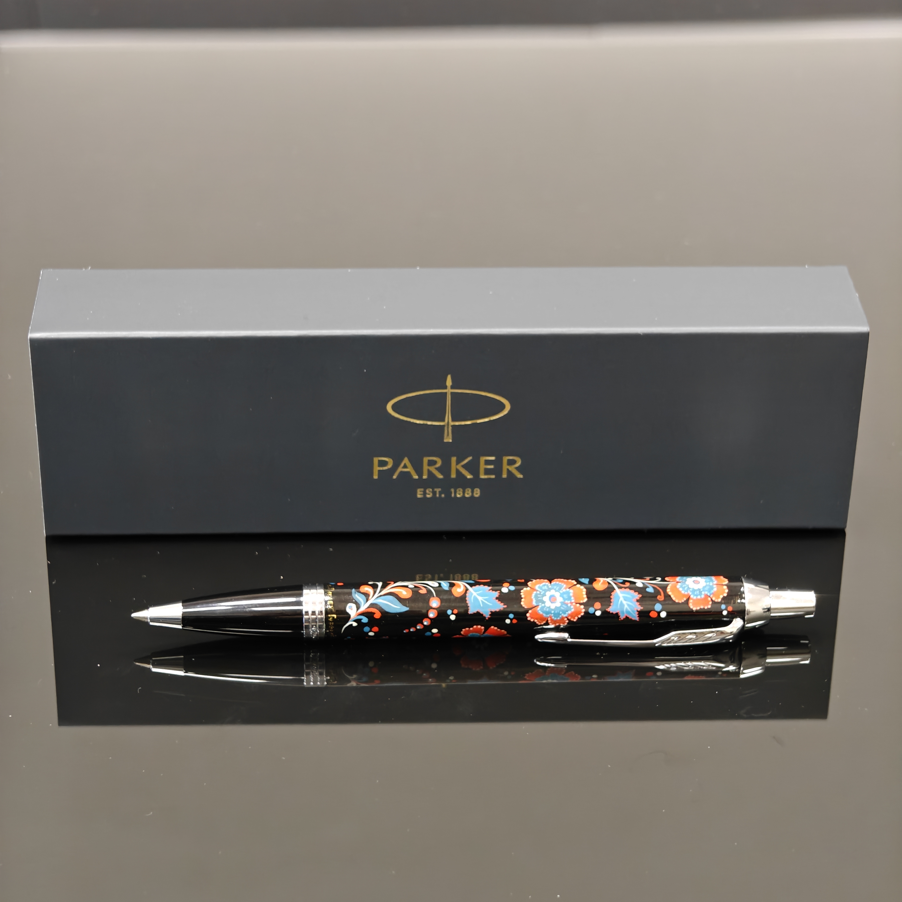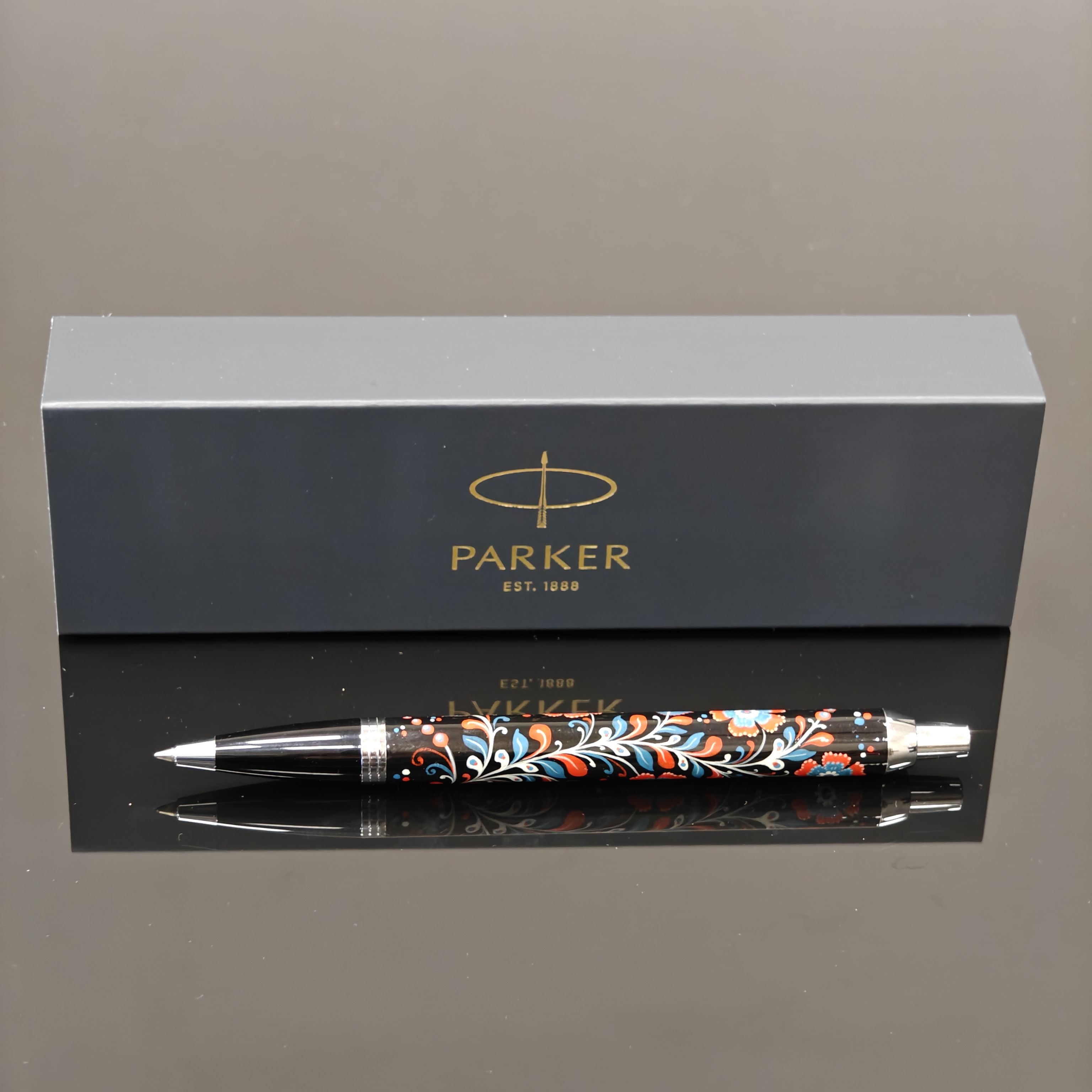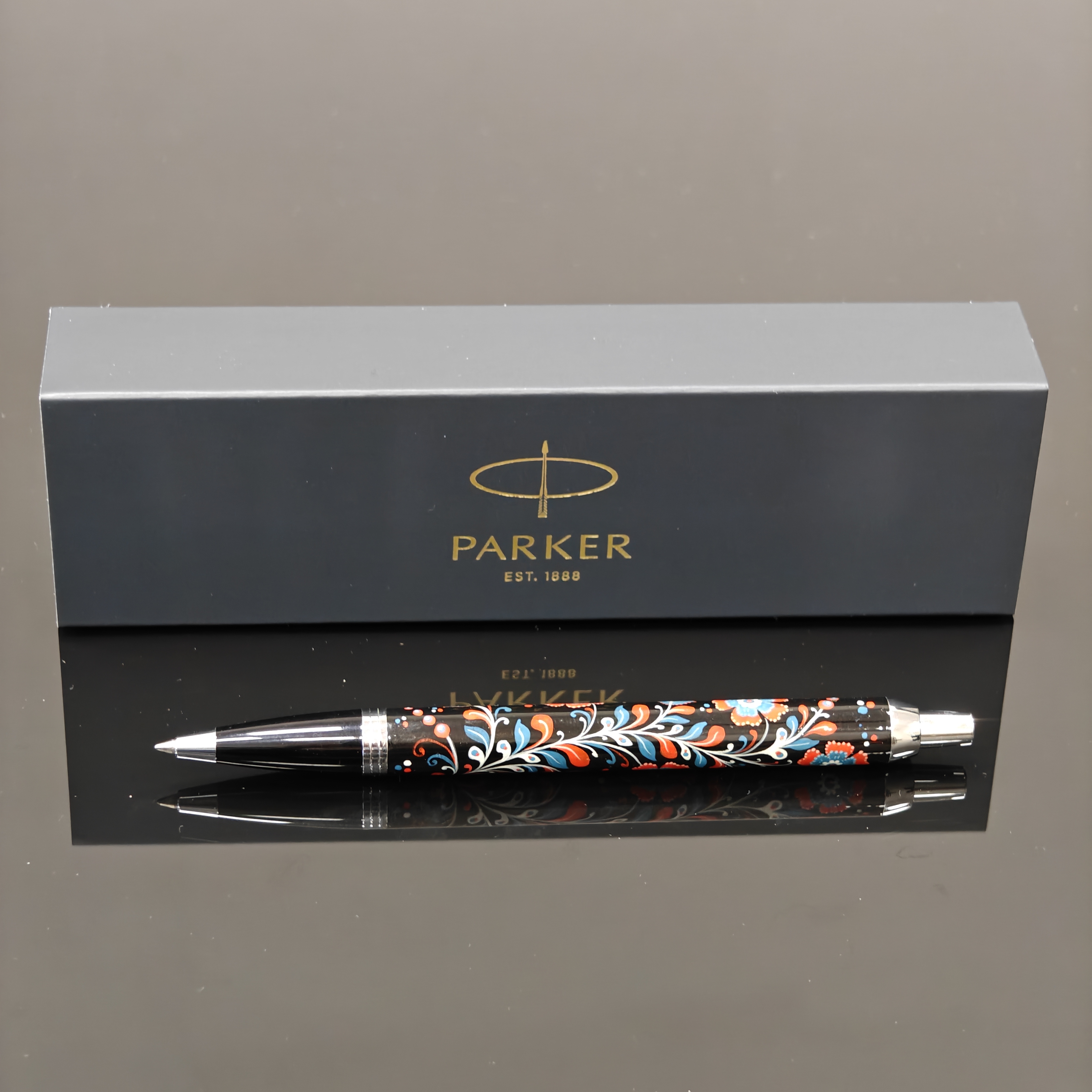 Также, у нас есть дорогие ручки Parker, которые расписаны вручную художниками с. Палех, с. Холуй по всем правилам лаковой миниатюрной живописи.