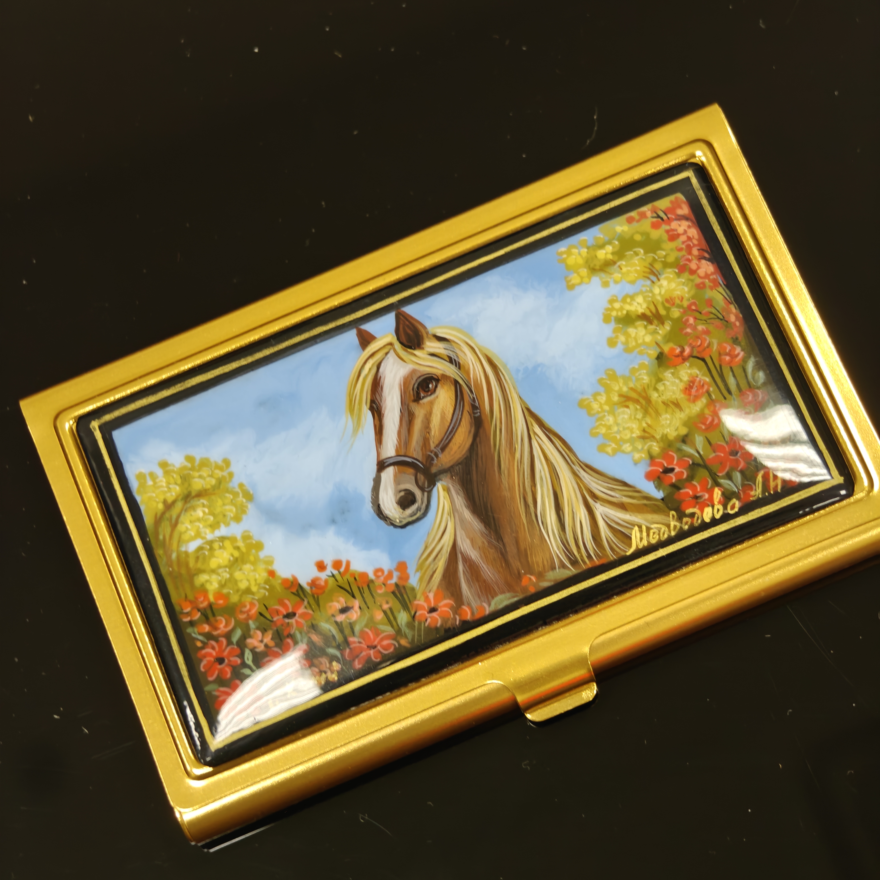 Также возможно нанесение на визитницы дарственных надписей или логотипа компании.