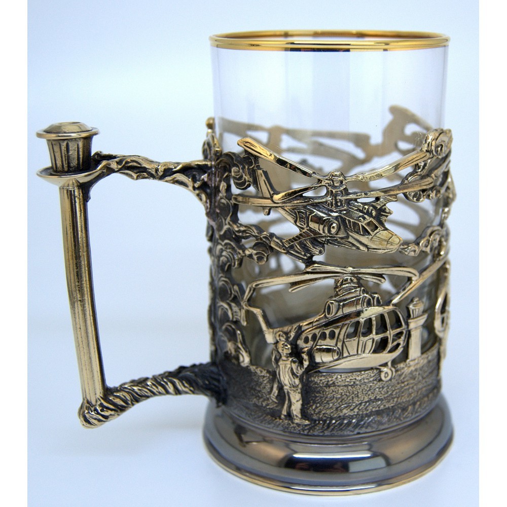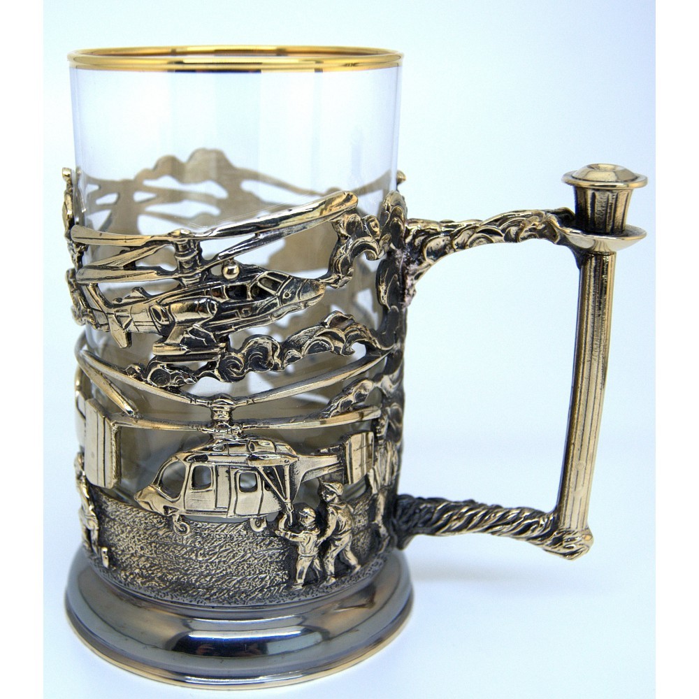 Литой подстаканник из латуни эмалью.
