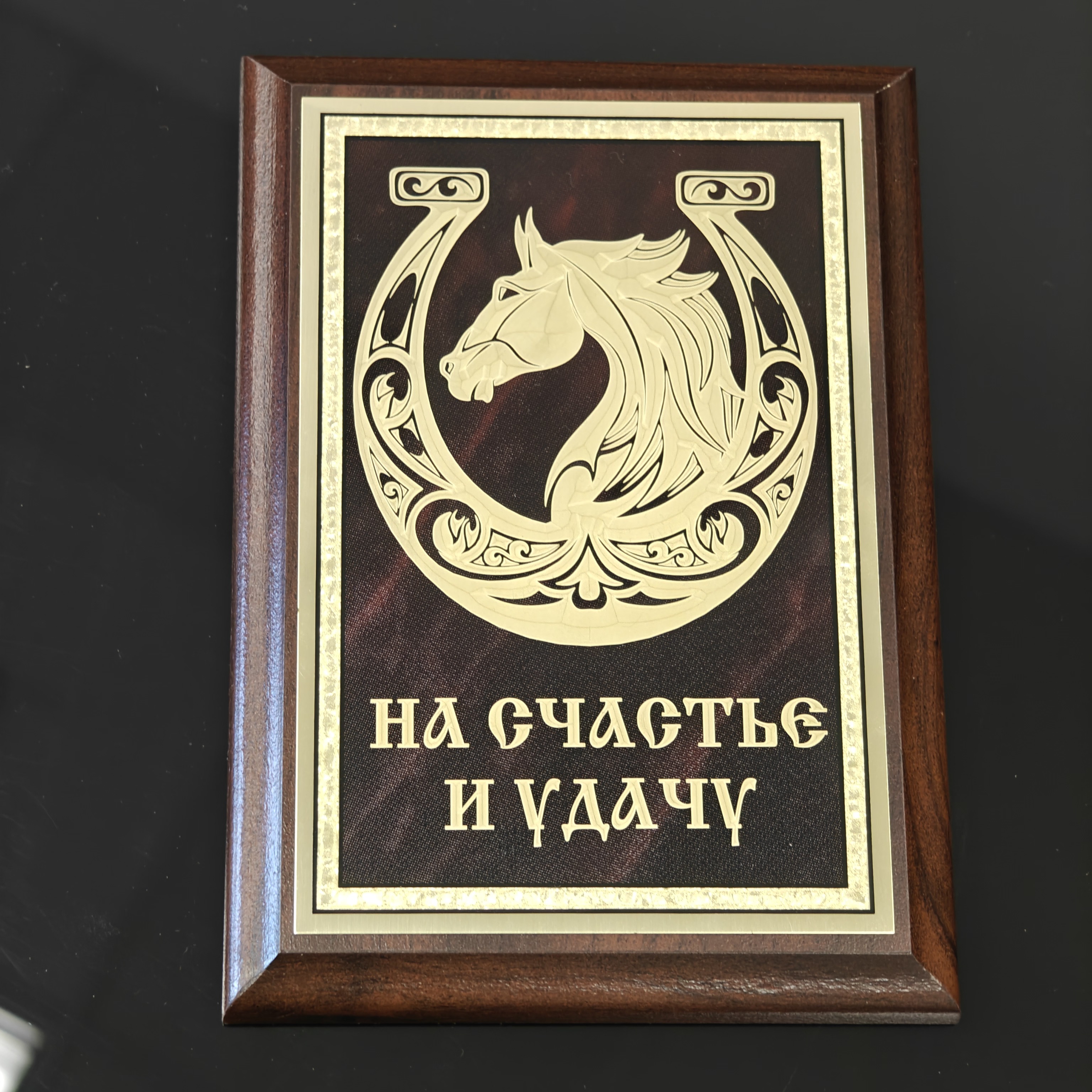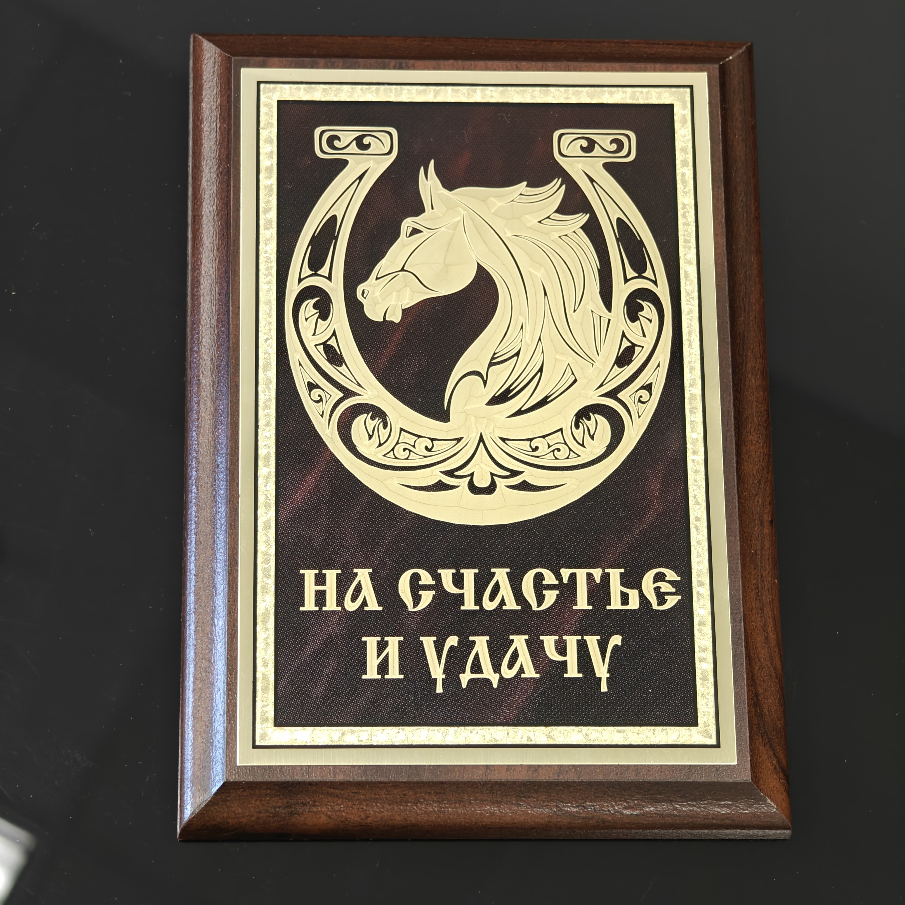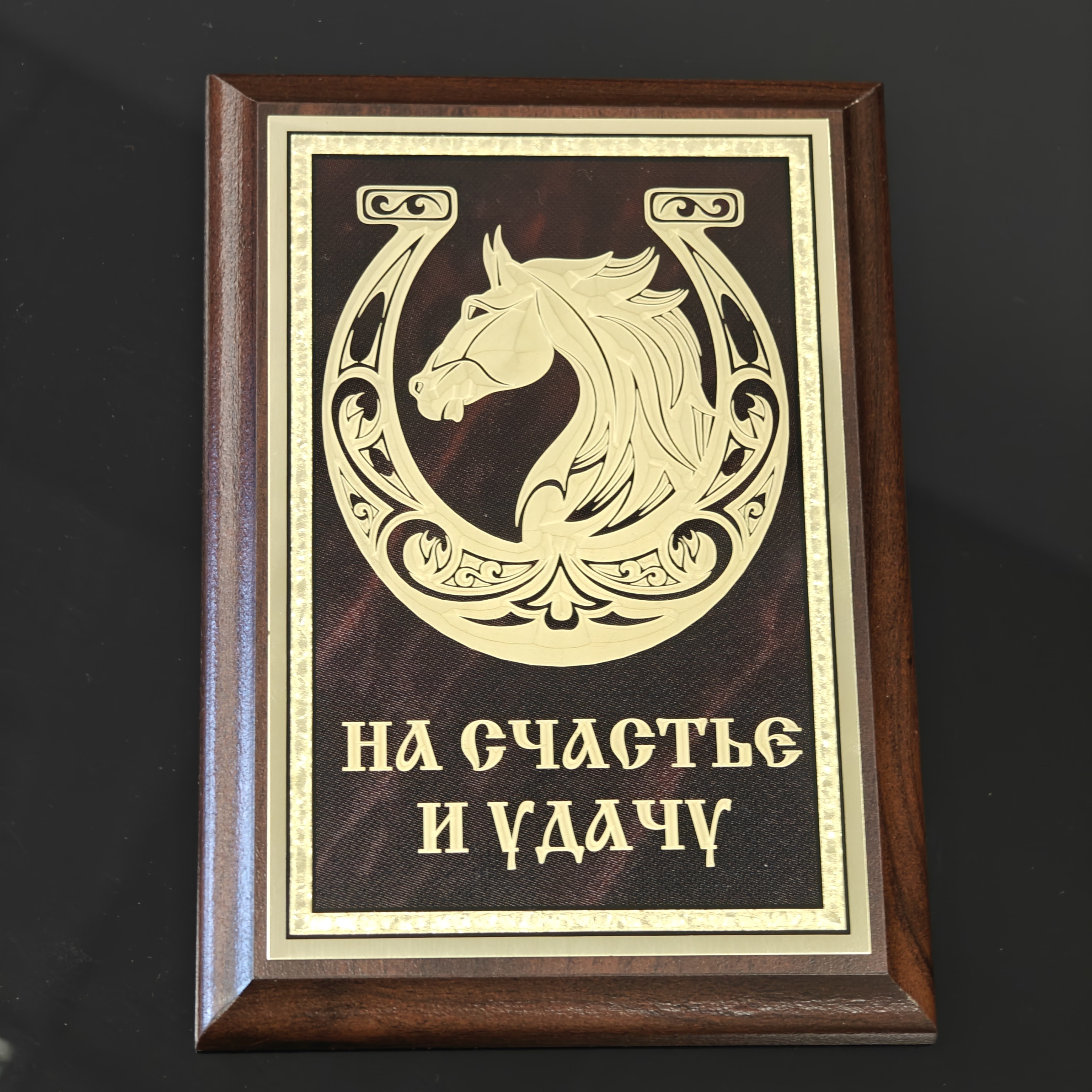 Сувенирная плакетка «Конь с подковой. На счастье и удачу»